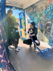 En guise de dernière visite, parents et enfants ont pu découvrir la Galerie Ambulante, un véhicule aménagé en galerie et espace d’exposition. Ce musée mobile est venu s’installer directement au sein de chacune des crèches durant une après-midi.