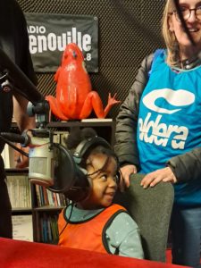 En parallèle de la visite, un autre groupe d’enfants accompagné de personnels de la crèche, sont partis à la découverte des studios de Radio Grenouille pour s’initier au monde de la radio : écoute de comptines au casque, expérimentation avec des platines, découverte des supports d’enregistrement…