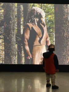 Trois temps de visites culturelles ont ensuite été proposés. Guidés par une médiatrice petite enfance de la Friche la Belle de Mai, les familles ont fait la visite de l’exposition “Âmes Verte – Quand l’art affronte l’anthropocène”, donnant aux enfants la possibilité de jouer avec les vidéo-projections, de s’approprier les espaces et d’expérimenter à partir de nombreux objets et matières.
